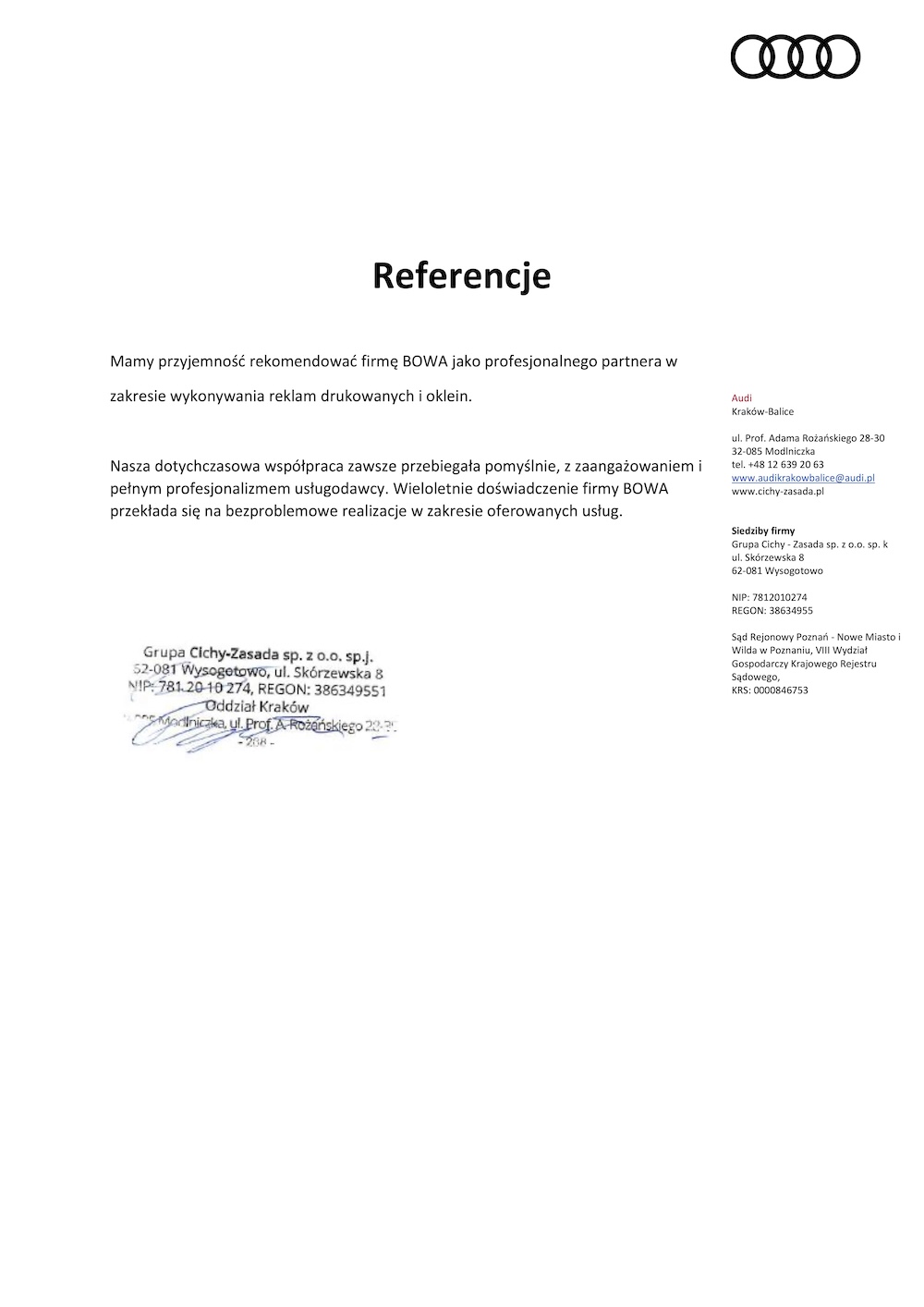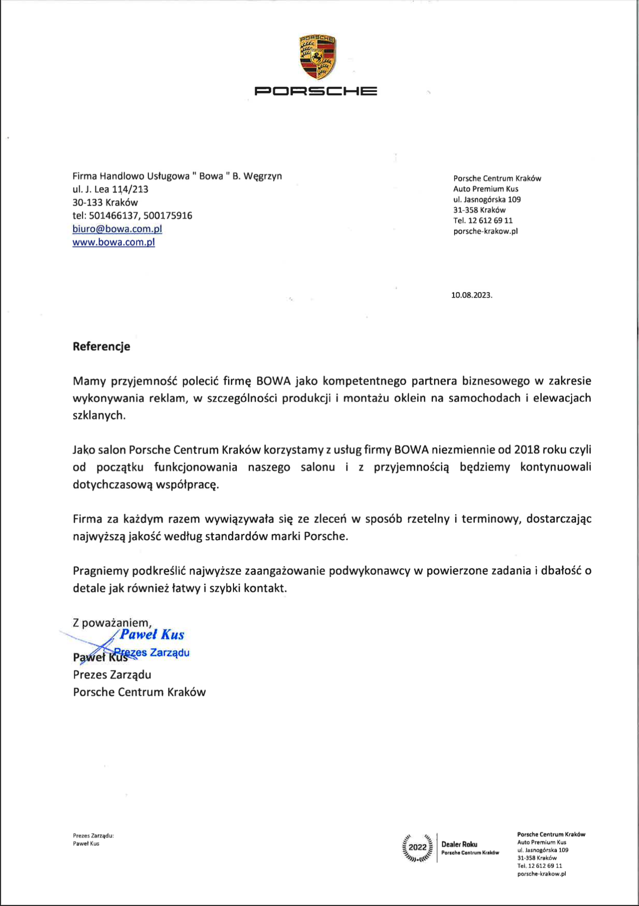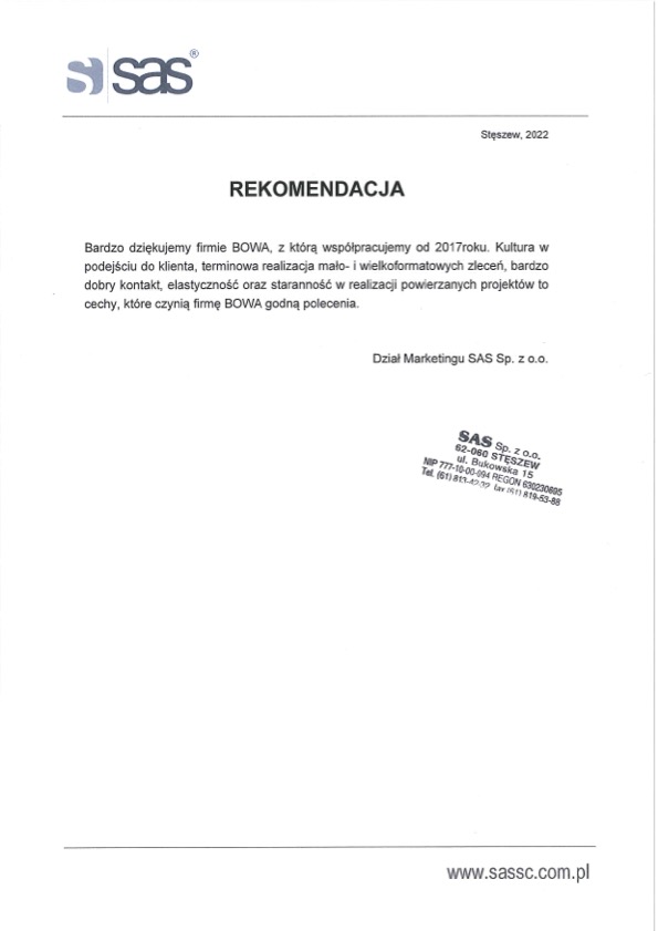 W przekazie wizualnym i reklamie, najważniejszy jest oryginalny pomysł, doskonały projekt i jego profesjonalne wykonanie. Dobry zespół ludzi tworzących reklamę wizualną i użytkową, to podstawa sukcesu. To właśnie "BOWA". Chcemy spełniać Państwa potrzeby i oczekiwania. Każdy z naszego zespołu ma wieloletnie doświadczenie w tworzeniu i wykonywaniu wszystkiego co należy do szeroko rozumianej sztuki użytkowej. Dzięki swoim kwalifikacjom możemy sprostać praktycznie każdemu wyzwaniu. Nasze prace można odnaleźć w całej Polsce. Wykonane i montowane na życzenie w każdym miejscu.